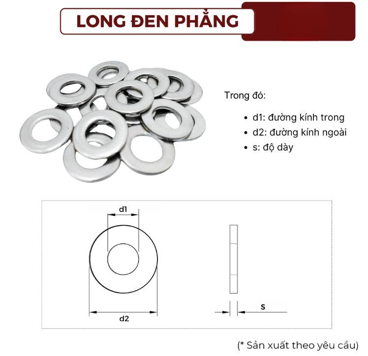 Cấu tạo của long đen phẳng khá đơn giản, chỉ bao gồm một mảnh kim loại phẳng hình tròn có lỗ:
